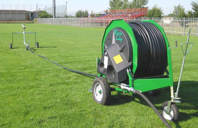 Los Cañones Viajeros Irrimec Serie Rainsky fueron diseñados para regar estadios, canchas de fútbol, hipódromos, picaderos, campos deportivos, zonas verdes y huertas. Vienen con una torreta fija y su turbina funciona con caudales desde 3 m³/h hasta 20 m³/h (0.8 l/s hasta 5.6 l/s). Estos equipos se pueden movilizar fácilmente con un mini tractor o una cuatrimoto e incluso de forma manual.