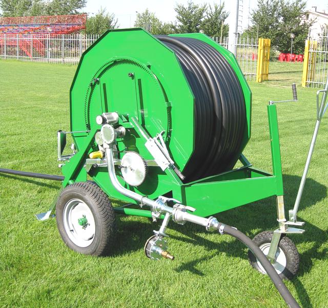 - Carreta para traer el aspersor, dotata de ruedas