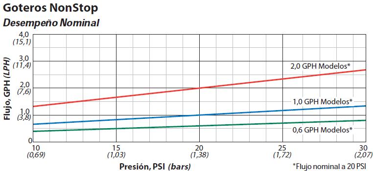 • Se recomienda un filtro mínimo de 30 mesh y una presión mínima de 15 PSI para el sistema de gotero Nonstop.